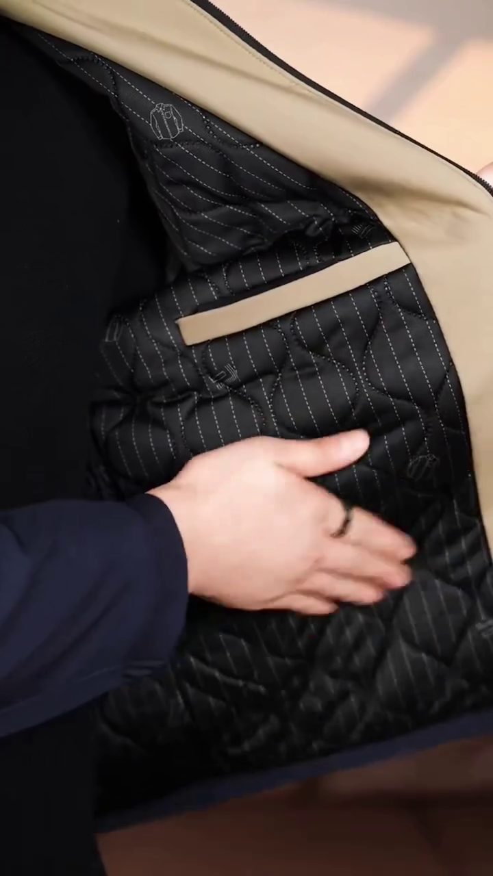 Contrast Trim: Notice the faint, likely brown or tan piping/trim along the zipper and collar edge, adding a subtle touch of premium contrast.