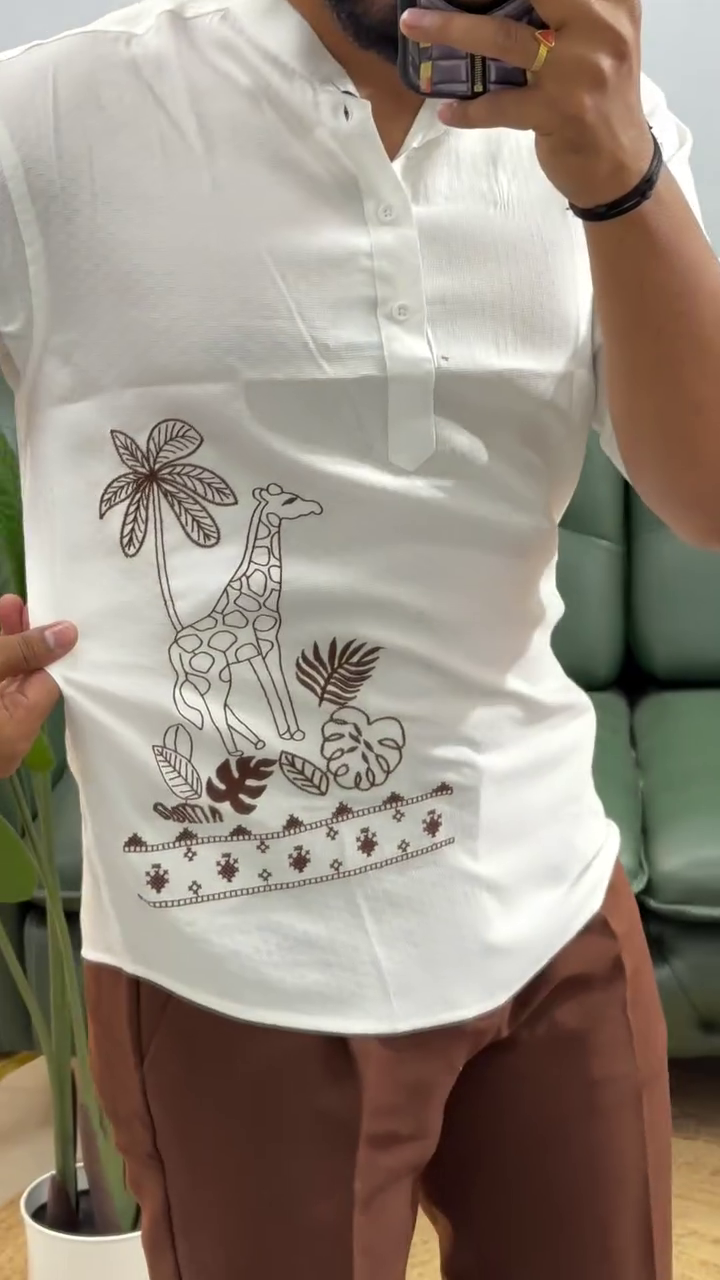 Fabric :- Cotton Blend Men’s Kurta || Pattern :- Printed Kurtas for men || Length Type :- Hip Length Kurta || Fit Type :- Regular Fit || Coller :- Mandarin/Chinese collar || Package Contain :- 1 Casual Short Kurta For Men.